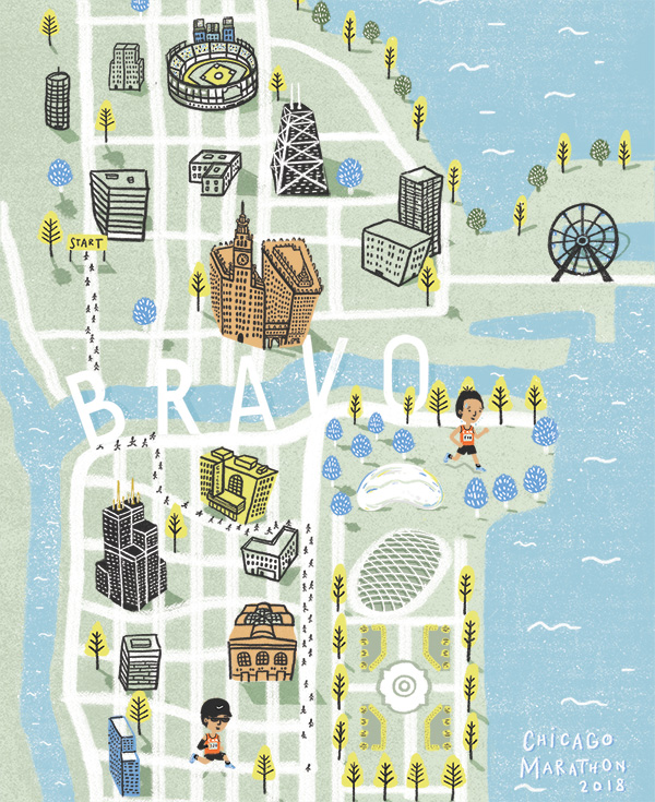 This was a commissioned piece for a client who wanted a personalized card to support a friend's marathon in Chicago.