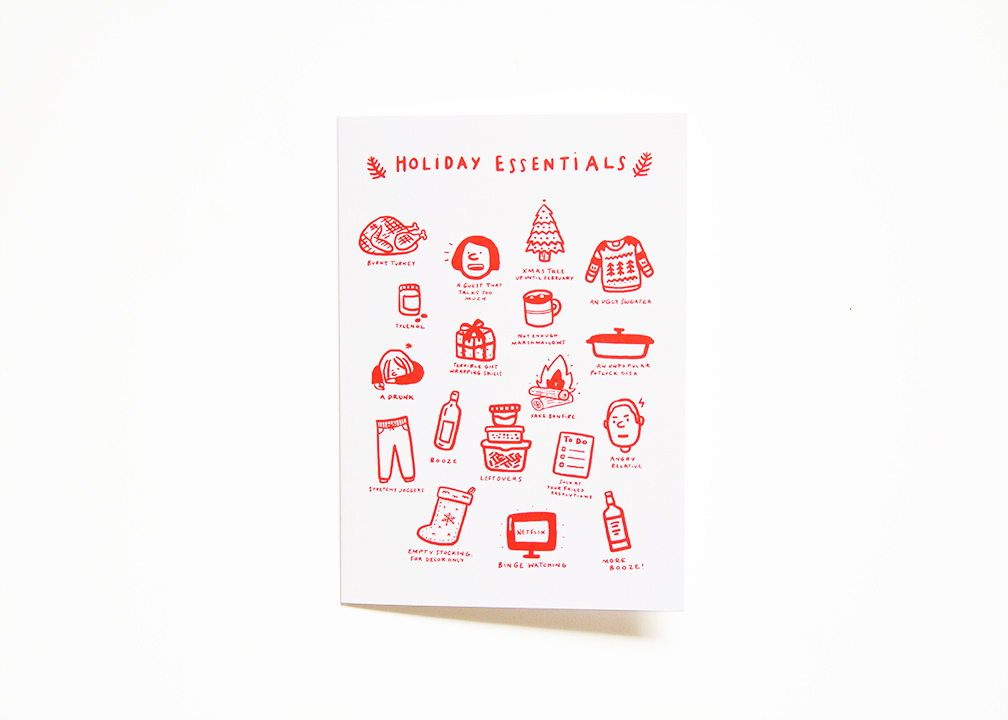 A variety of holiday cards I designed to sell for the 2017 Season. Each are conceptualized to spark a few chuckle and a bit of love and warmth!