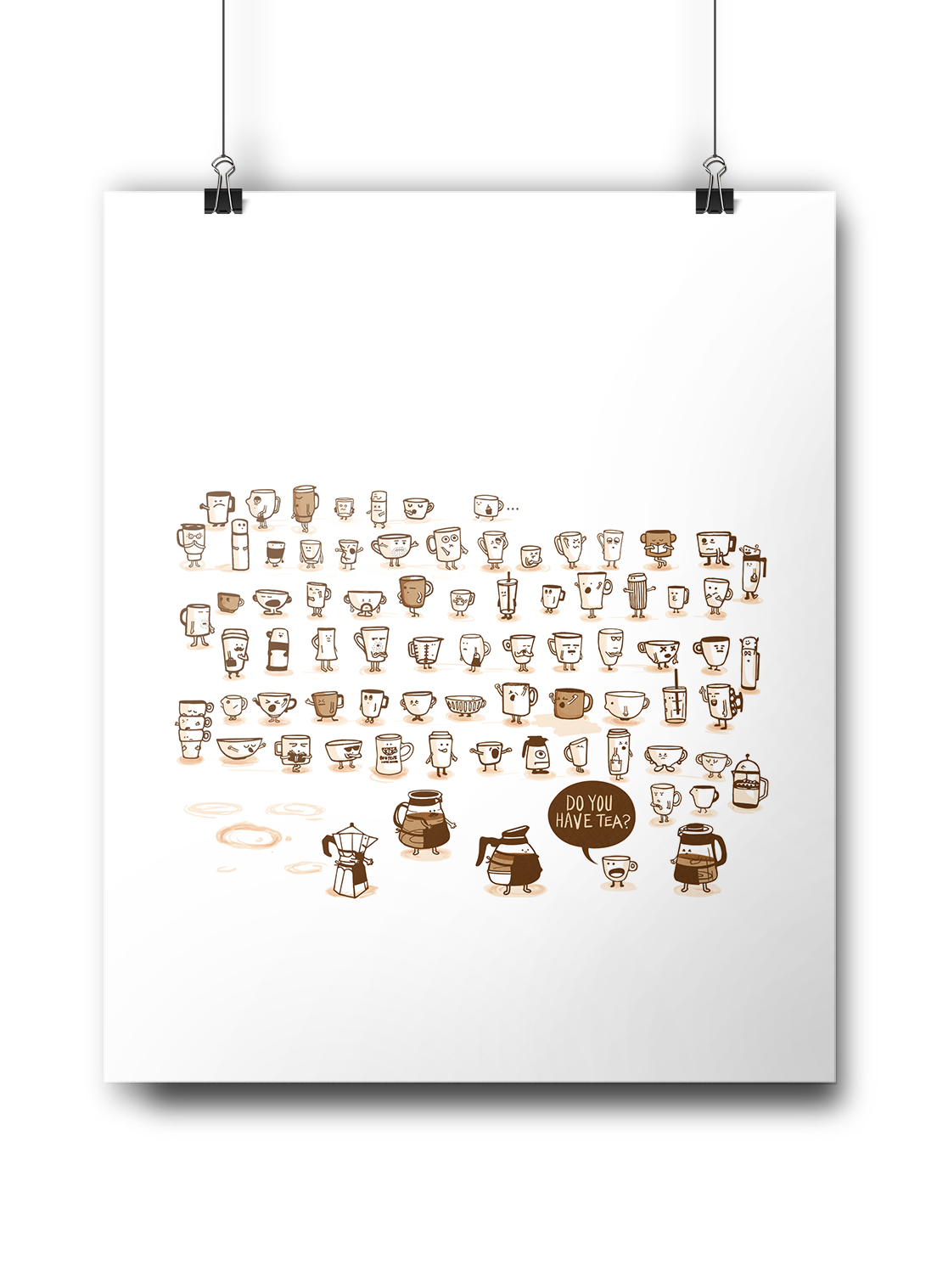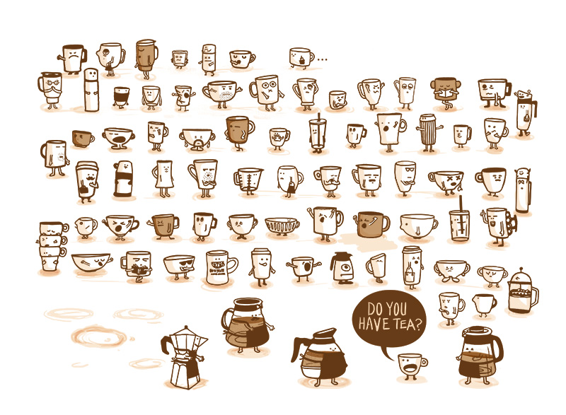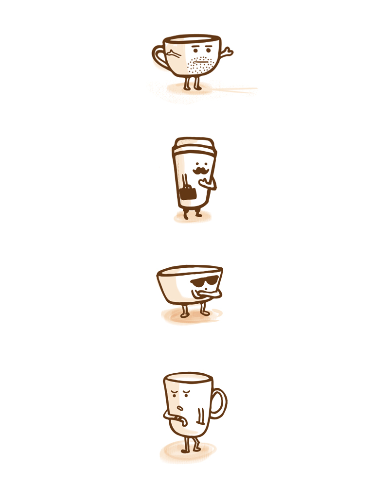 My aim was on the humourous side; recreating a typical scene at a busy coffee chain, where lineups are endless and